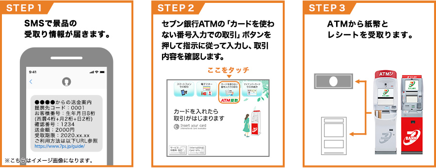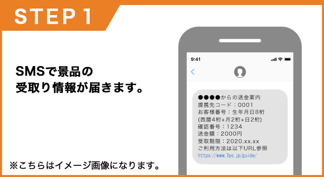 ※SMSの再送はいたしかねますので、現金を受取られるまで大切に保管してください。